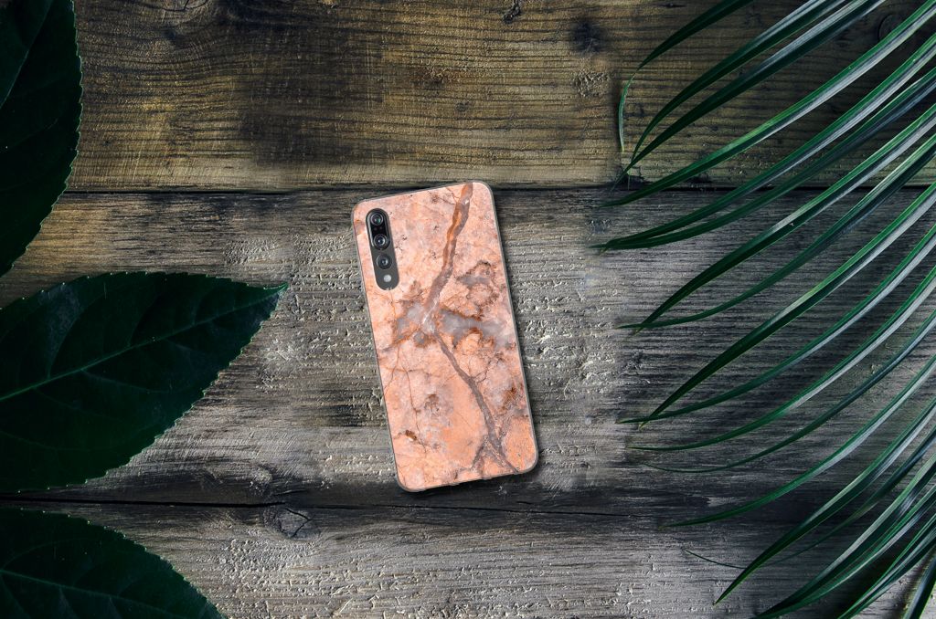 Huawei P20 Pro TPU Siliconen Hoesje Marmer Oranje