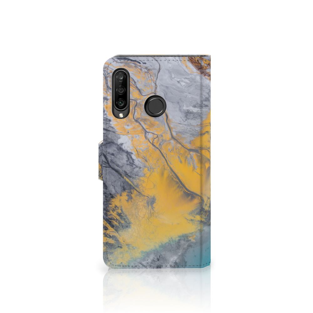 Huawei P30 Lite (2020) Bookcase Marble Blue Gold