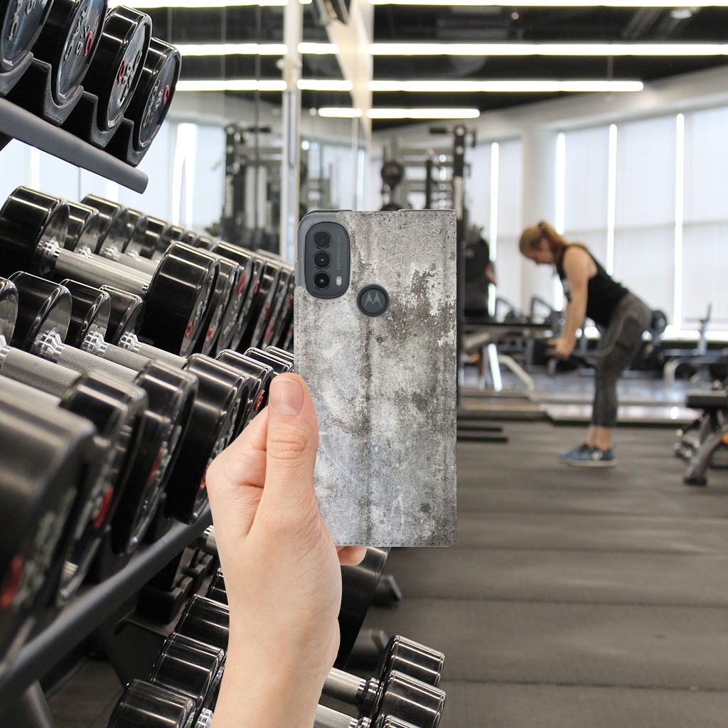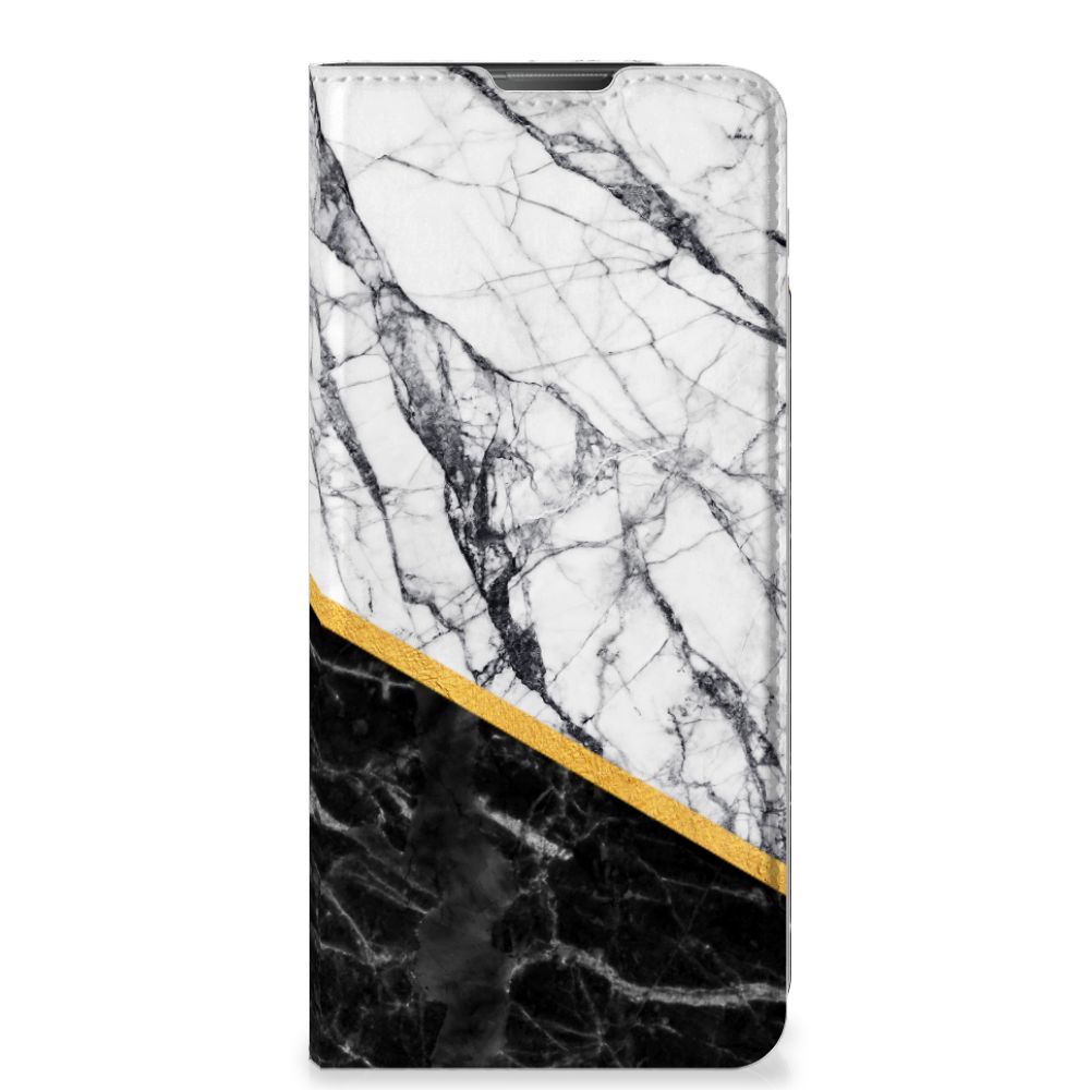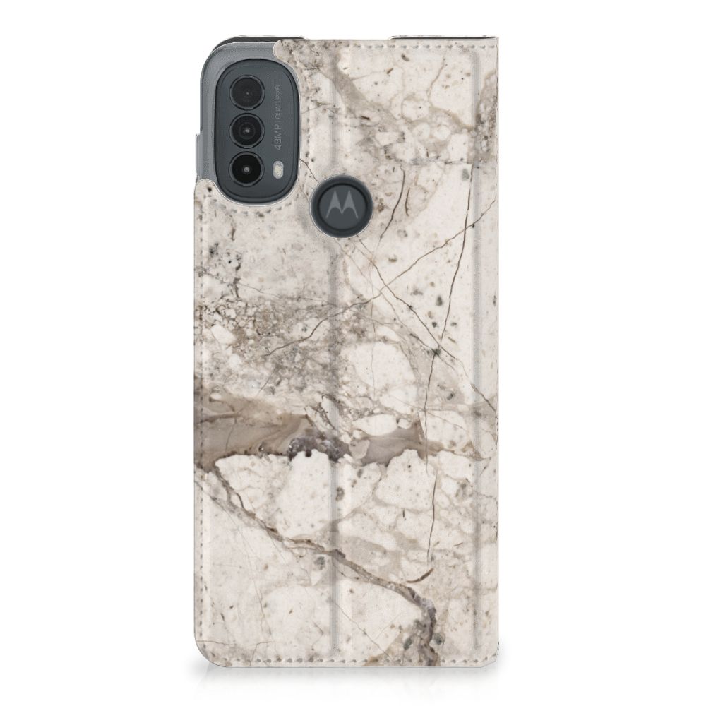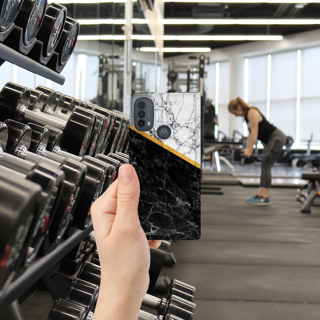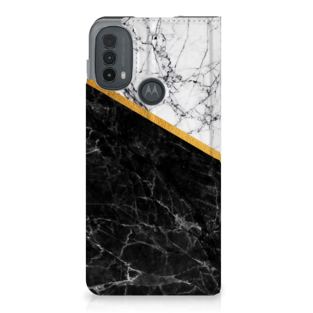 Motorola Moto E20 Standcase Marmer Wit Zwart - Origineel Cadeau Man