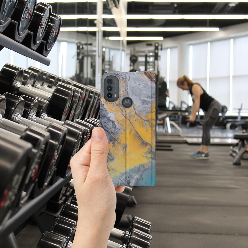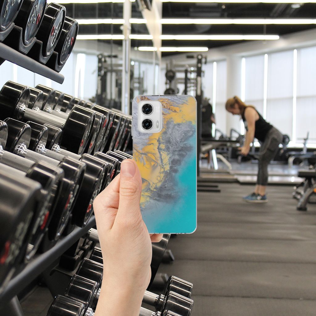 Motorola Moto G73 TPU Siliconen Hoesje Marble Blue Gold