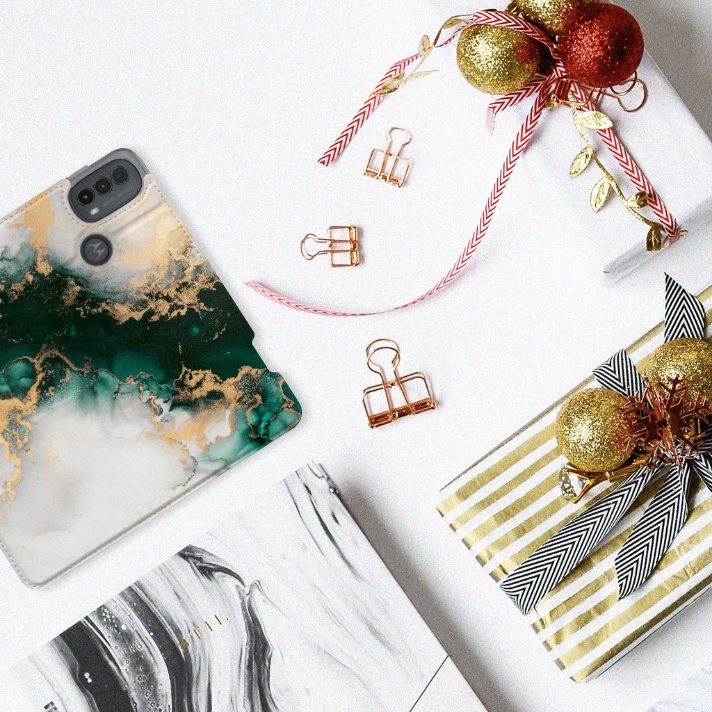 Motorola Moto E20 Standcase Marmer Zwart - Origineel Cadeau Vader