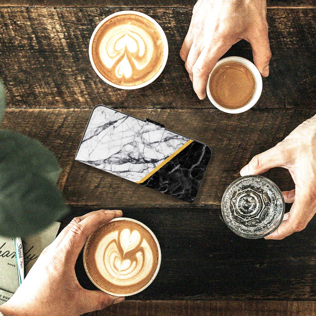 Motorola Moto G13 | G23 Standcase Marmer Wit Zwart - Origineel Cadeau Man