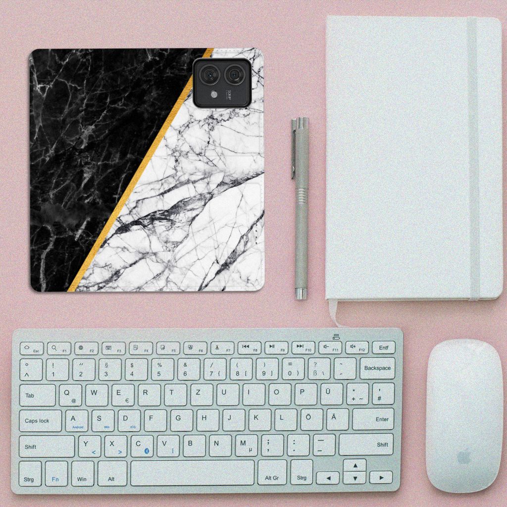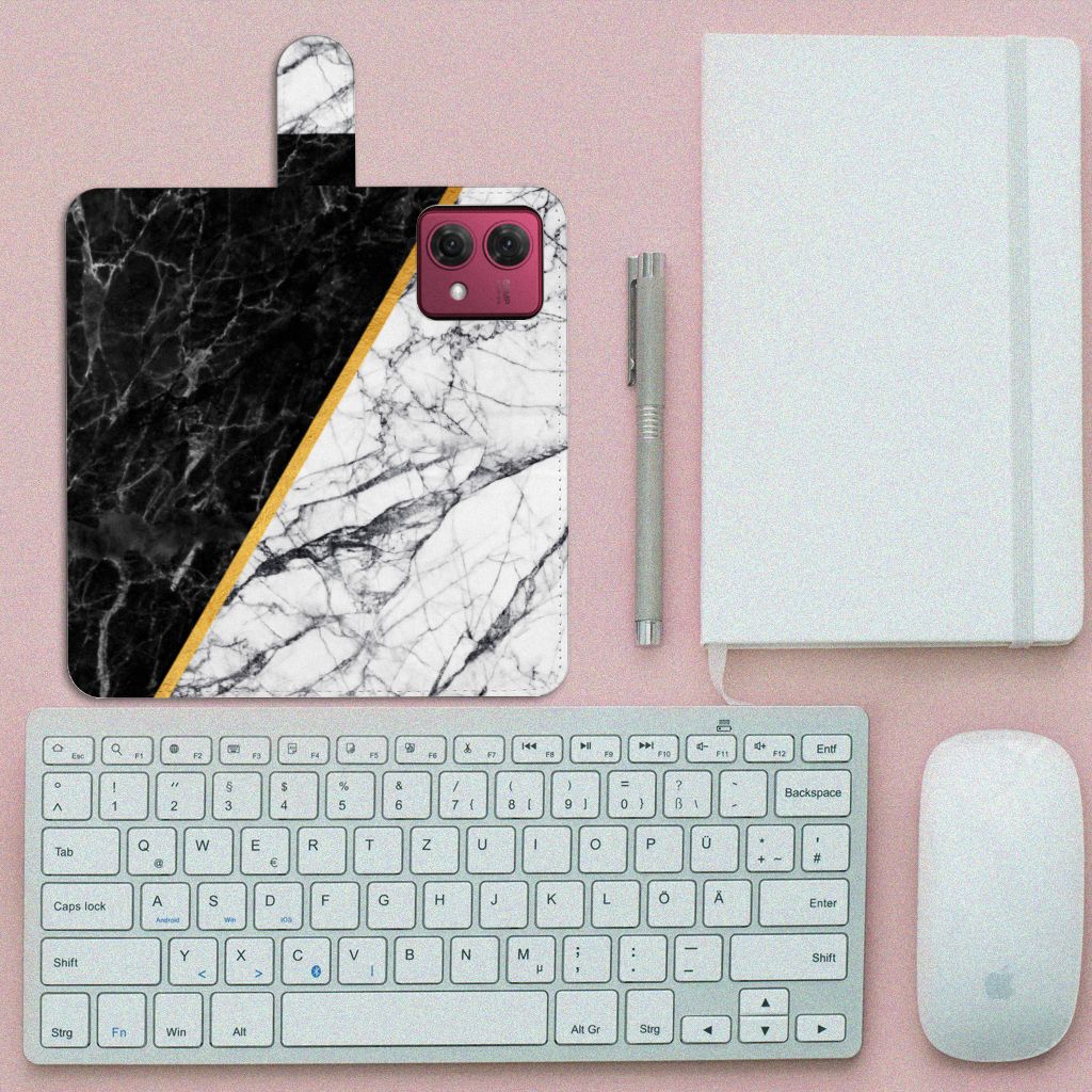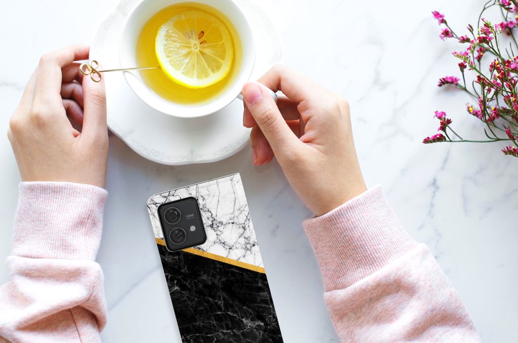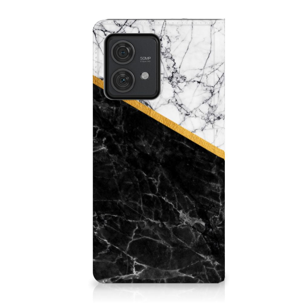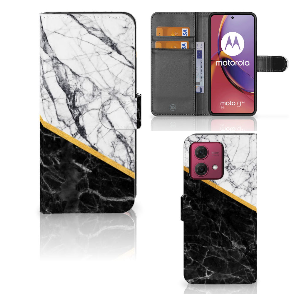 Motorola Moto G84 Bookcase Marmer Wit Zwart - Origineel Cadeau Man