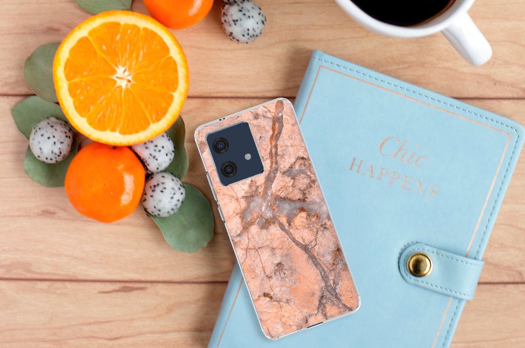 Motorola Edge 40 Neo TPU Siliconen Hoesje Marmer Oranje