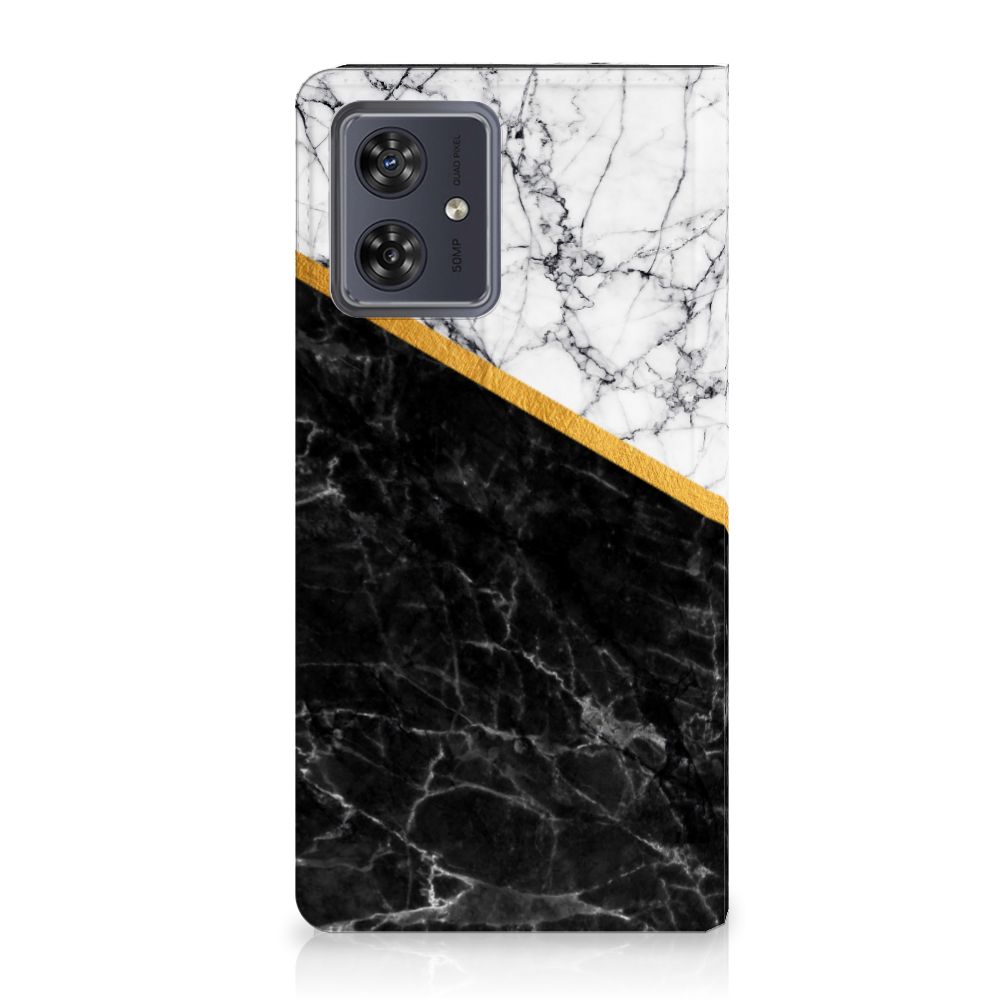 Motorola Edge 40 Neo Standcase Marmer Wit Zwart - Origineel Cadeau Man