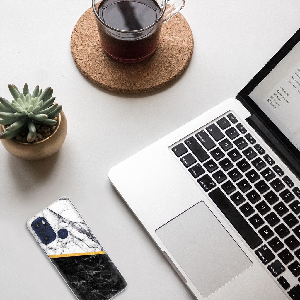 Motorola Moto G60s TPU Siliconen Hoesje Marmer Wit Zwart - Origineel Cadeau Man
