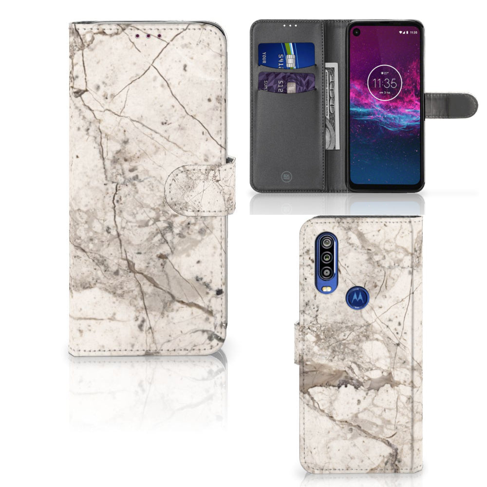Motorola One Action Bookcase Marmer Beige
