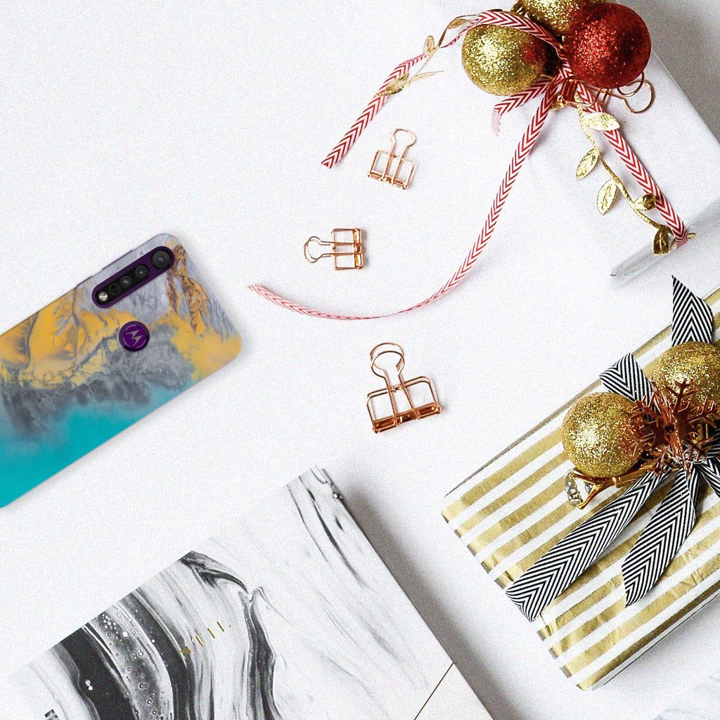 Motorola One Macro TPU Siliconen Hoesje Marble Blue Gold
