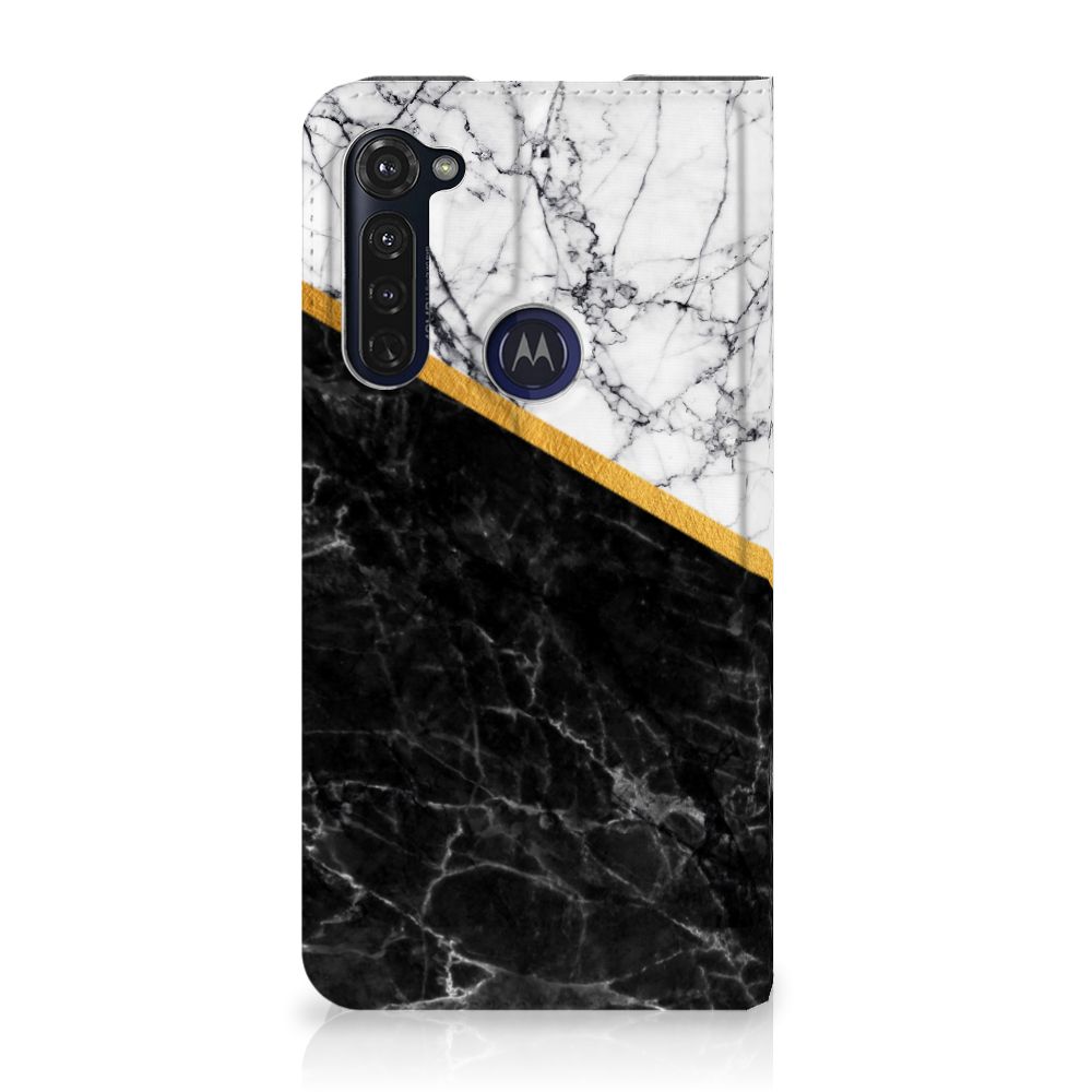 Motorola Moto G 5G Plus Standcase Marmer Zwart - Origineel Cadeau Vader