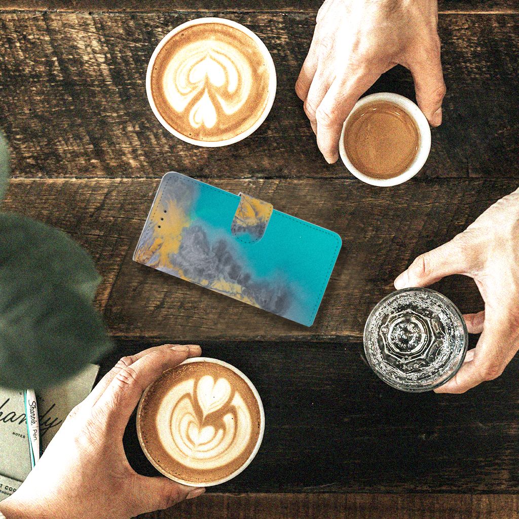 Motorola Moto G7 Play Bookcase Marble Blue Gold