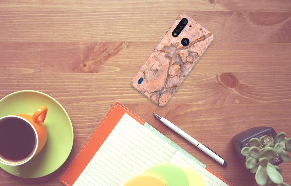 Motorola Moto G8 Power Lite TPU Siliconen Hoesje Marmer Oranje