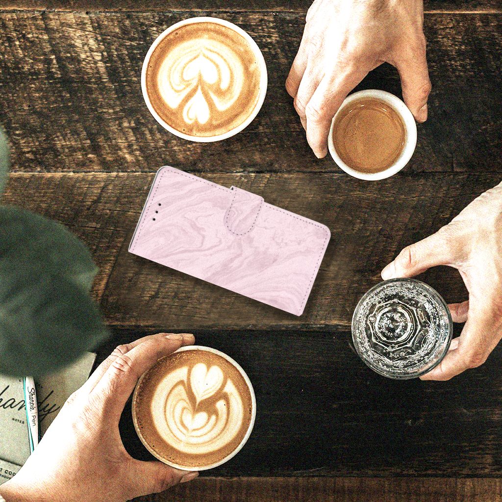 Motorola Moto G7 Play Bookcase Marble Pink - Origineel Cadeau Vriendin