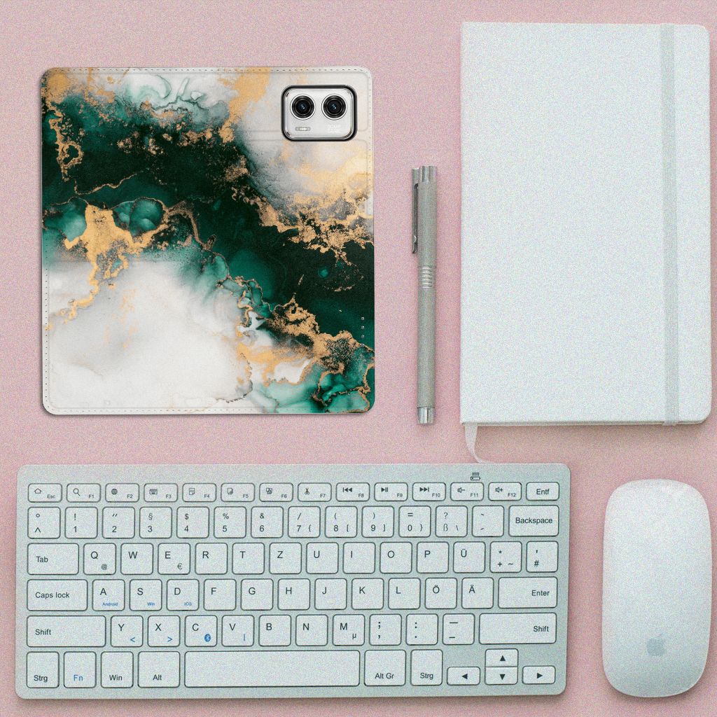 Bookcase voor Motorola Moto G73 Marmer Groen