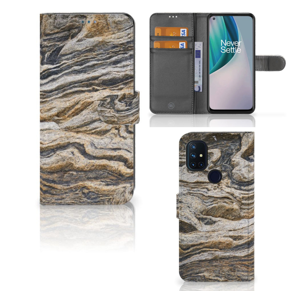 OnePlus Nord N100 Bookcase Marmer Wit Zwart - Origineel Cadeau Man