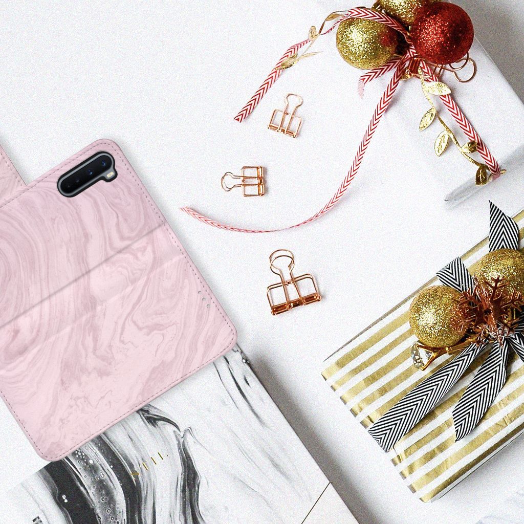 OnePlus Nord Bookcase Marble Pink - Origineel Cadeau Vriendin