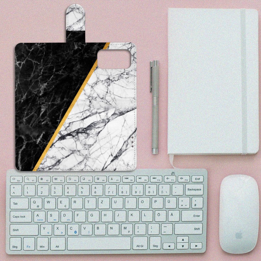 OnePlus 9 Pro Bookcase Marmer Wit Zwart - Origineel Cadeau Man