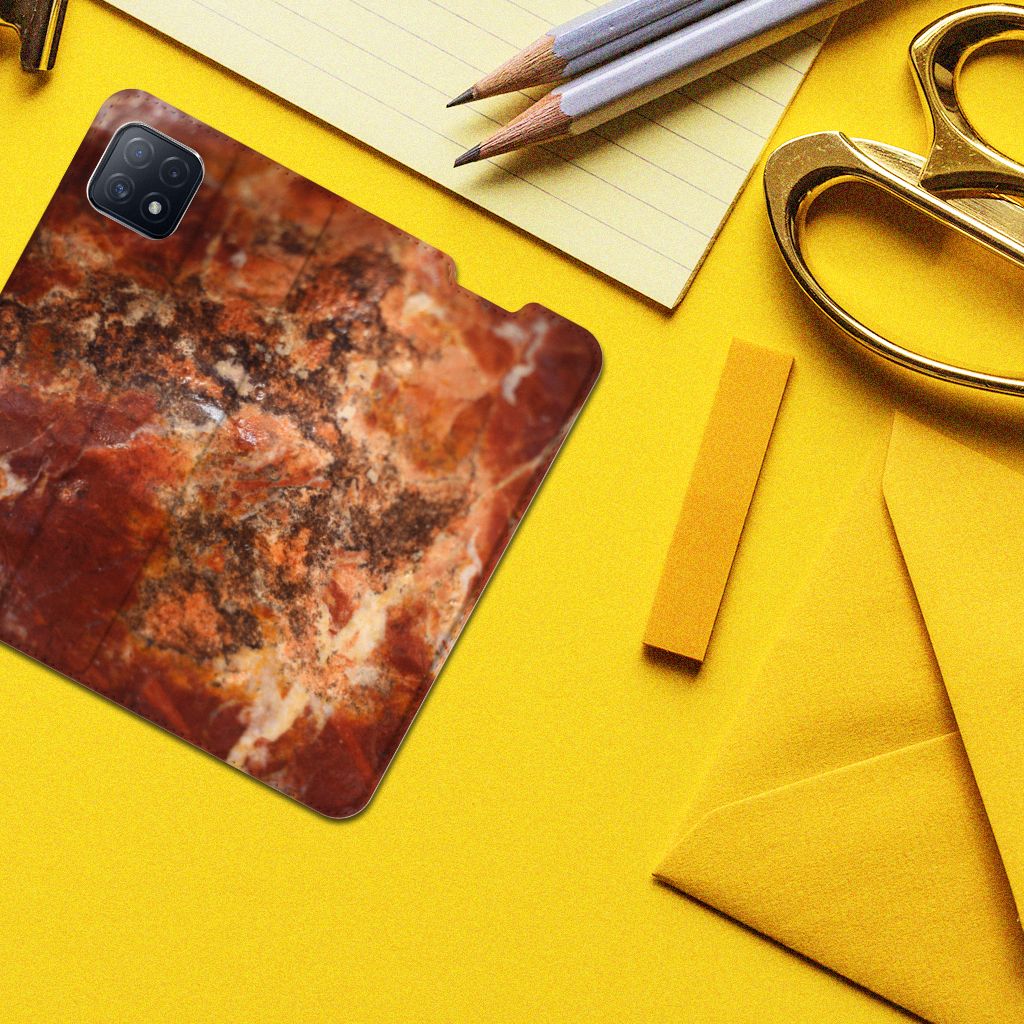 OPPO A15 Standcase Marmer Oranje