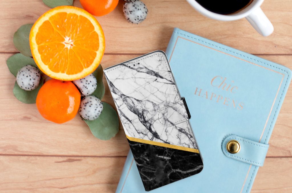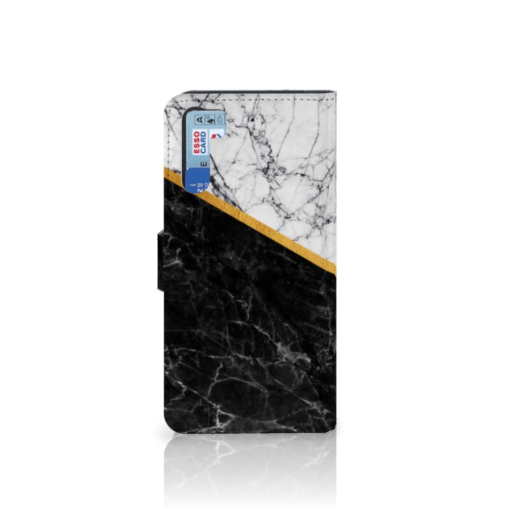 OPPO A91 | Reno3 Bookcase Marmer Wit Zwart - Origineel Cadeau Man