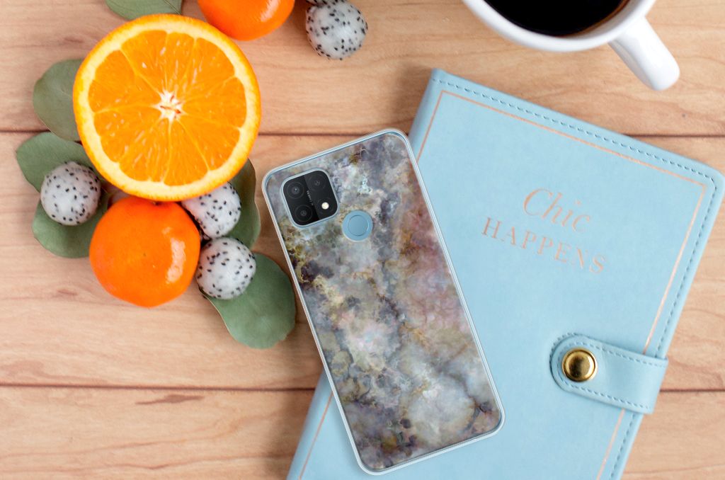 OPPO A15 TPU Siliconen Hoesje Marmer Grijs