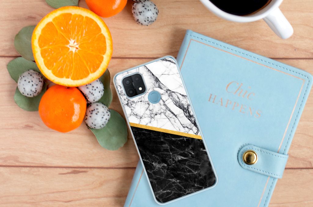 OPPO A15 TPU Siliconen Hoesje Marmer Wit Zwart - Origineel Cadeau Man