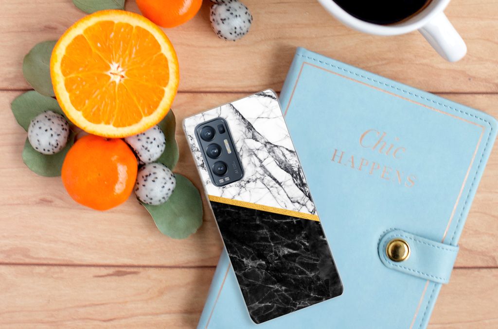 OPPO Find X3 Neo TPU Siliconen Hoesje Marmer Wit Zwart - Origineel Cadeau Man
