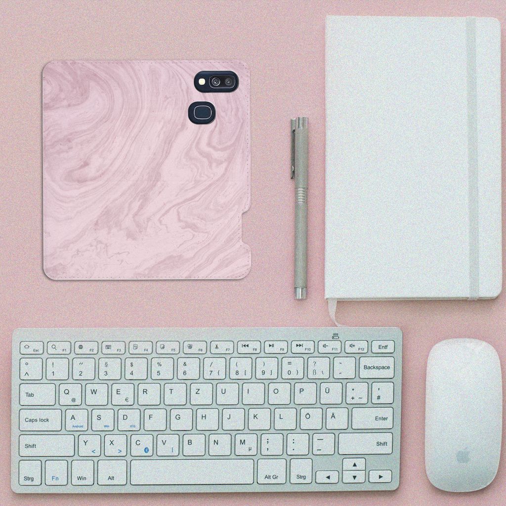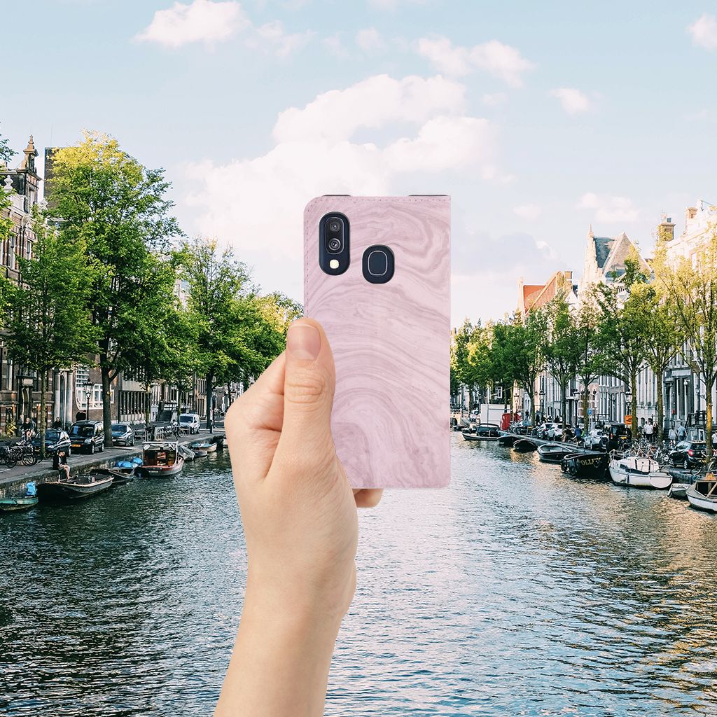 Samsung Galaxy A40 Standcase Marble Pink - Origineel Cadeau Vriendin