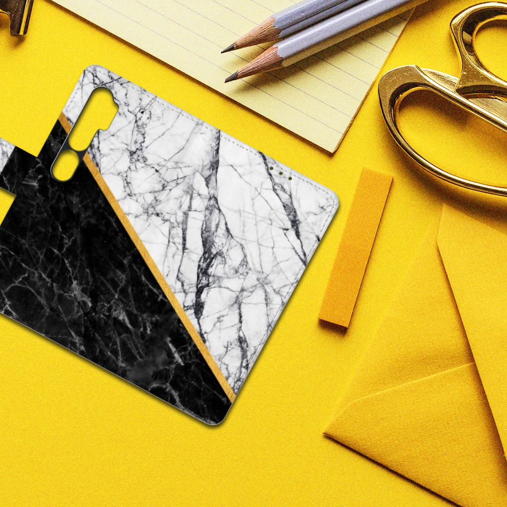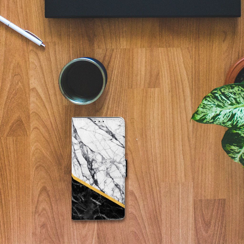 Xiaomi Mi Note 10 Pro Bookcase Marmer Wit Zwart - Origineel Cadeau Man
