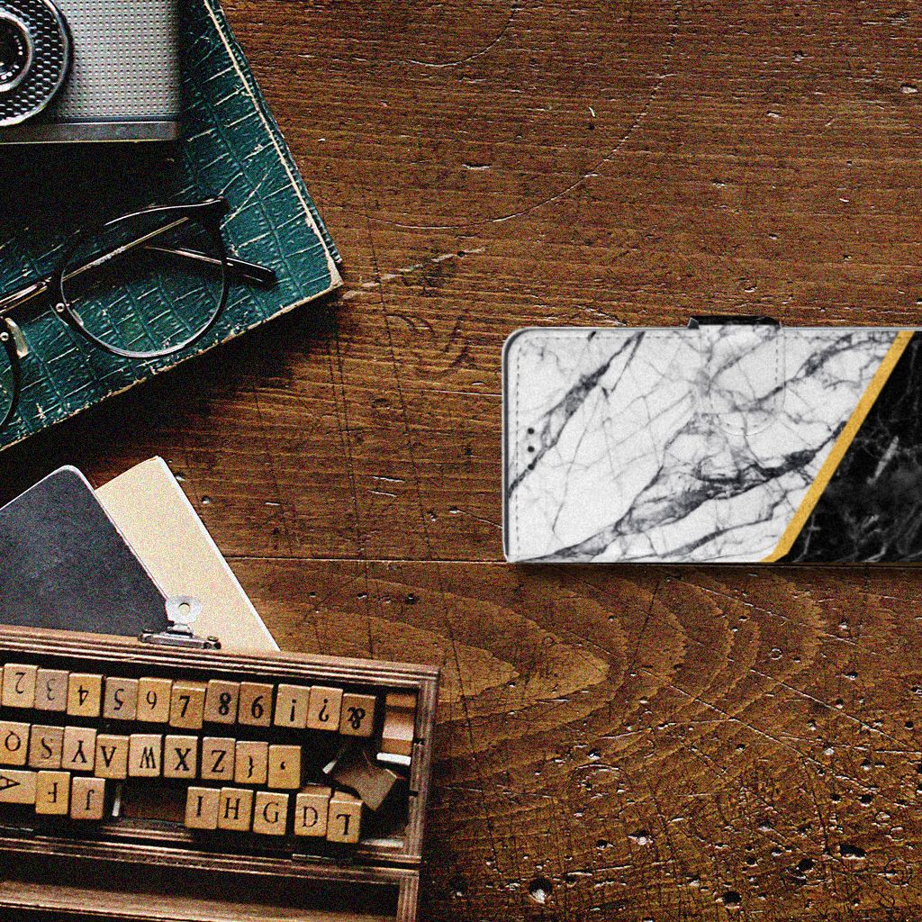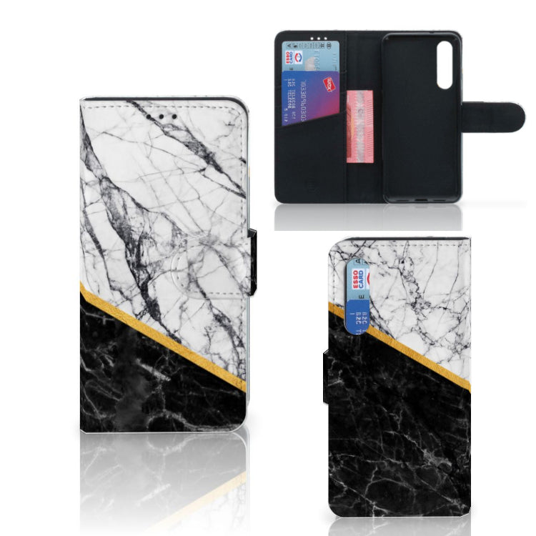Xiaomi Mi 9 SE Bookcase Marmer Wit Zwart - Origineel Cadeau Man