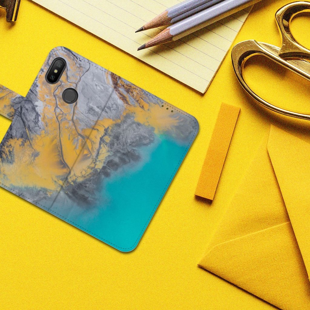 Xiaomi Mi A2 Lite Bookcase Marble Blue Gold