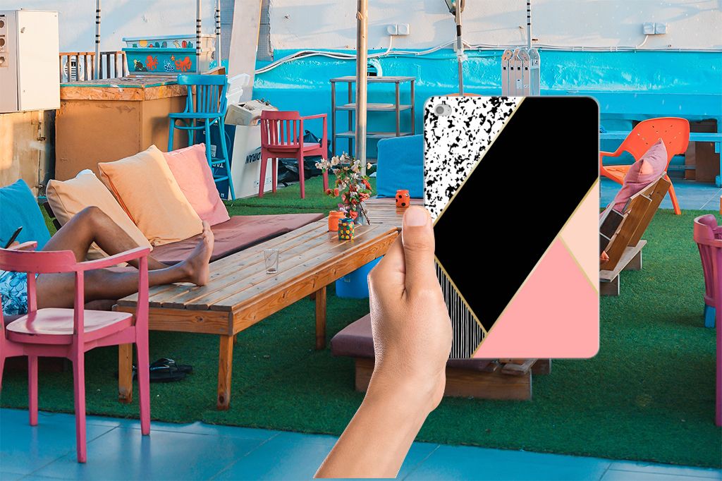 Apple iPad Mini 4 | Mini 5 (2019) Back Cover Zwart Roze Vormen