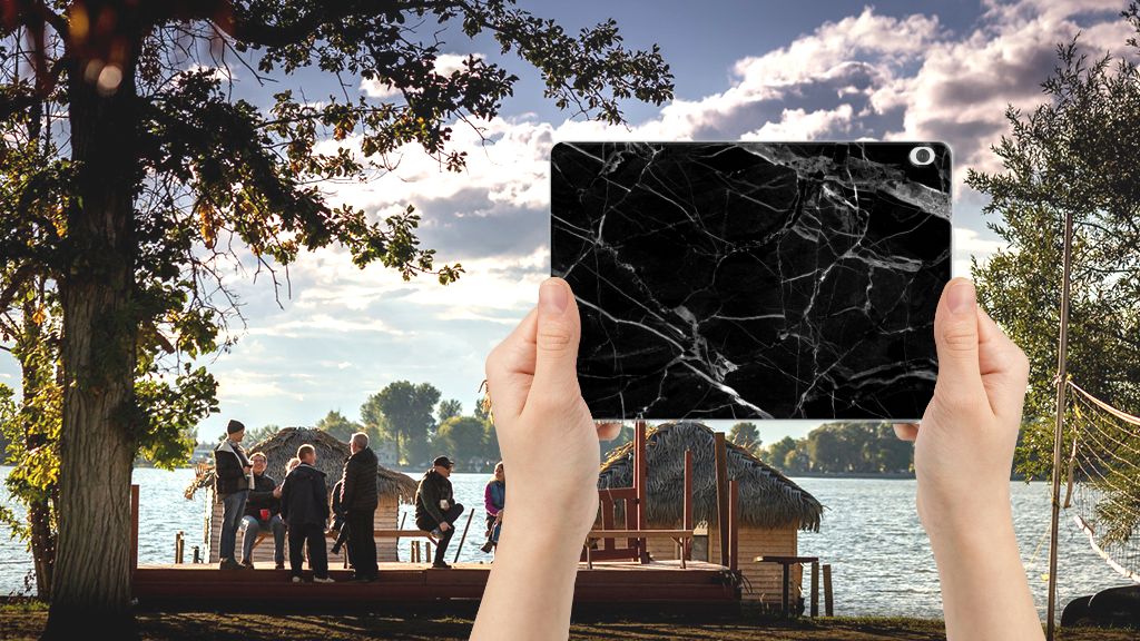 Lenovo Tab M10 Tablet Back Cover Marmer Zwart - Origineel Cadeau Vader