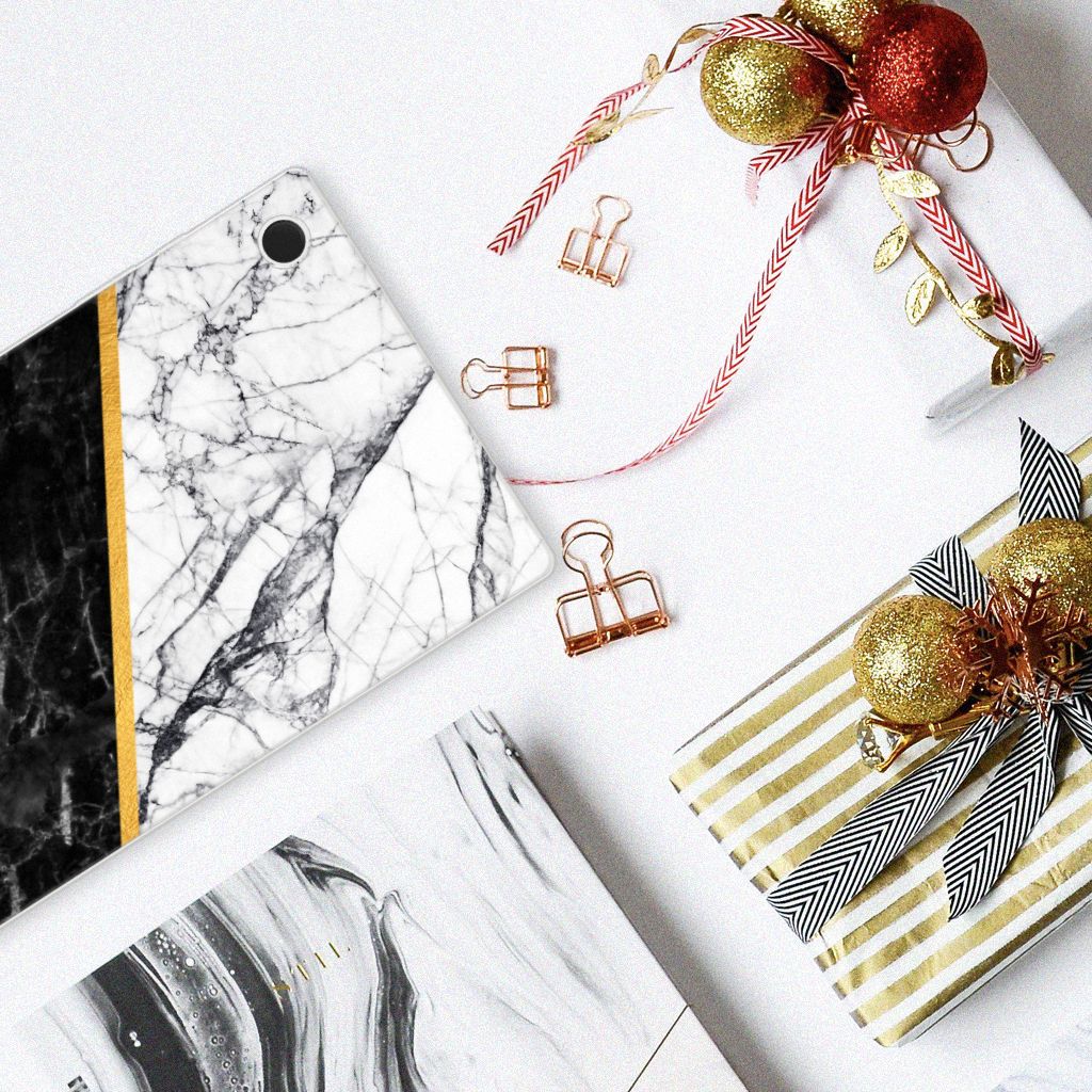 Samsung Galaxy Tab A8 2021/2022 Tablet Back Cover Marmer Wit Zwart - Origineel Cadeau Man