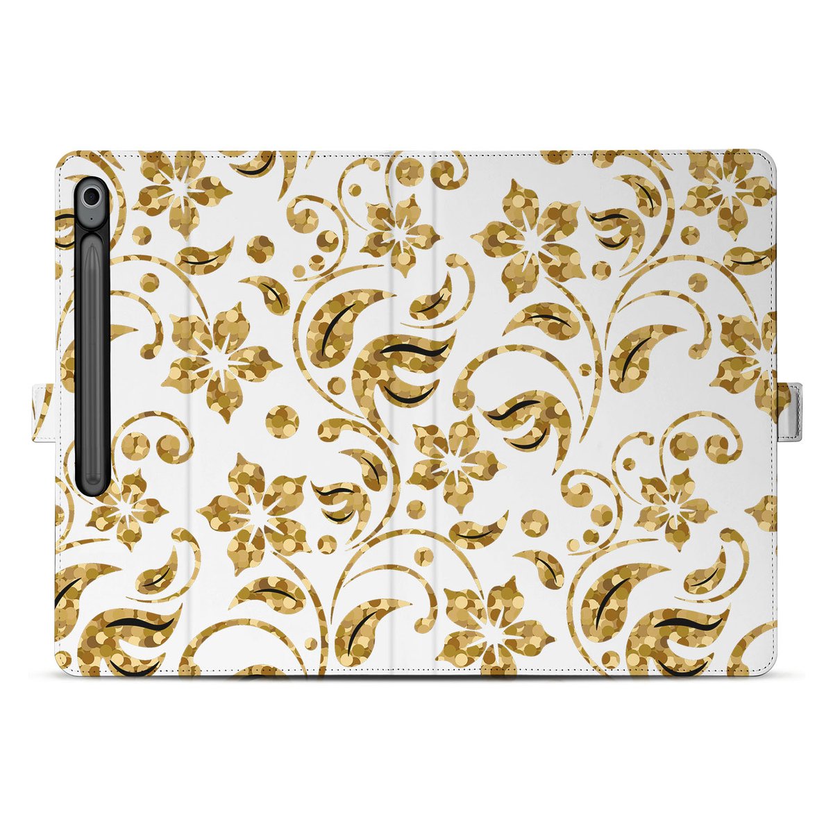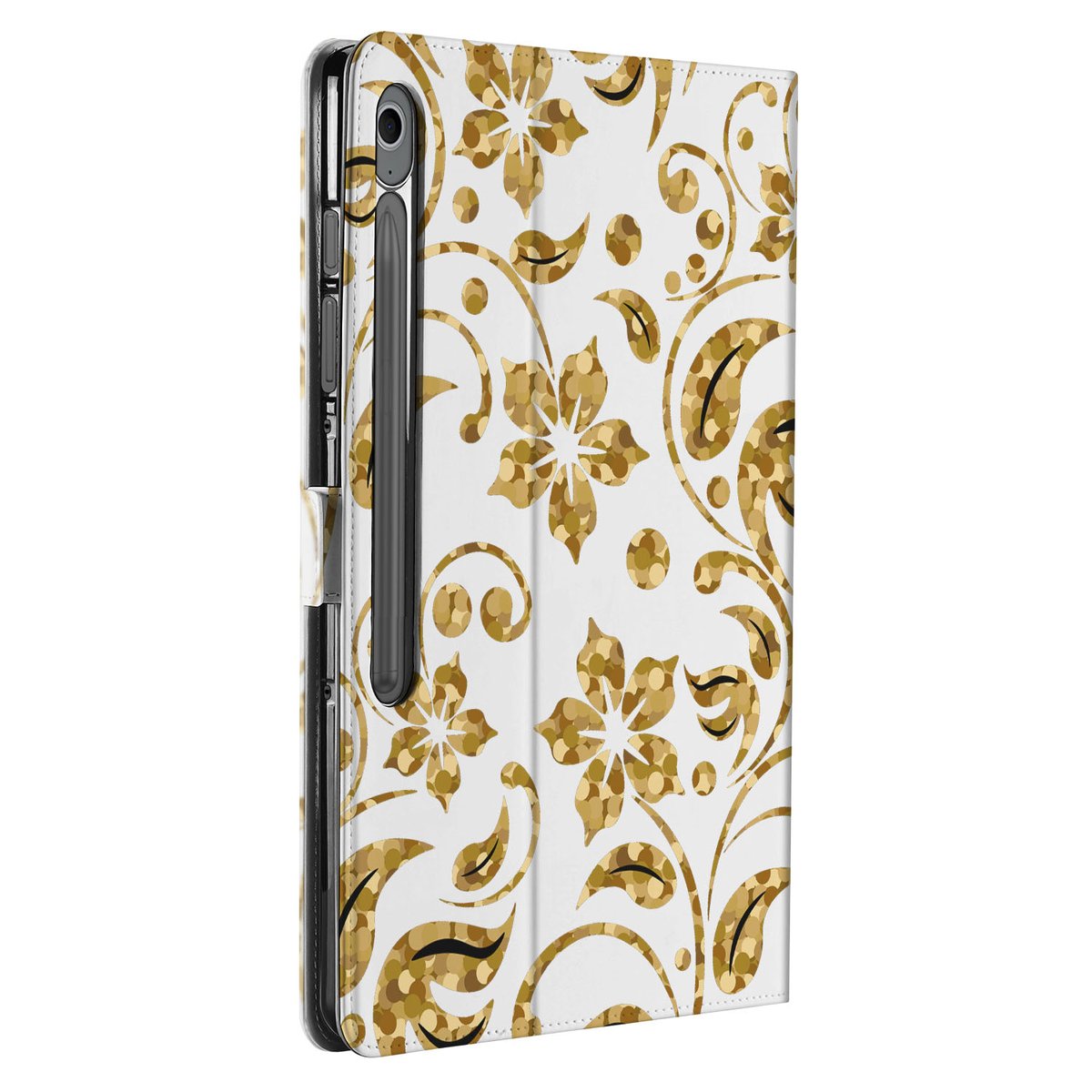 Samsung Galaxy Tab S10 FE Plus Book Case Hoesje met Standaard Gouden Bloemen