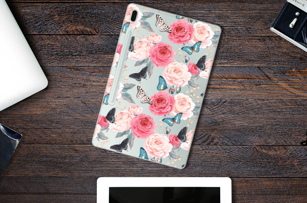 Samsung Galaxy Tab S7FE Siliconen Hoesje Butterfly Roses