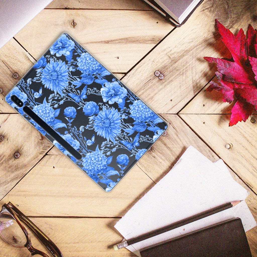 Siliconen Hoesje voor Samsung Galaxy Tab S7 Plus | S8 Plus Flowers Blue