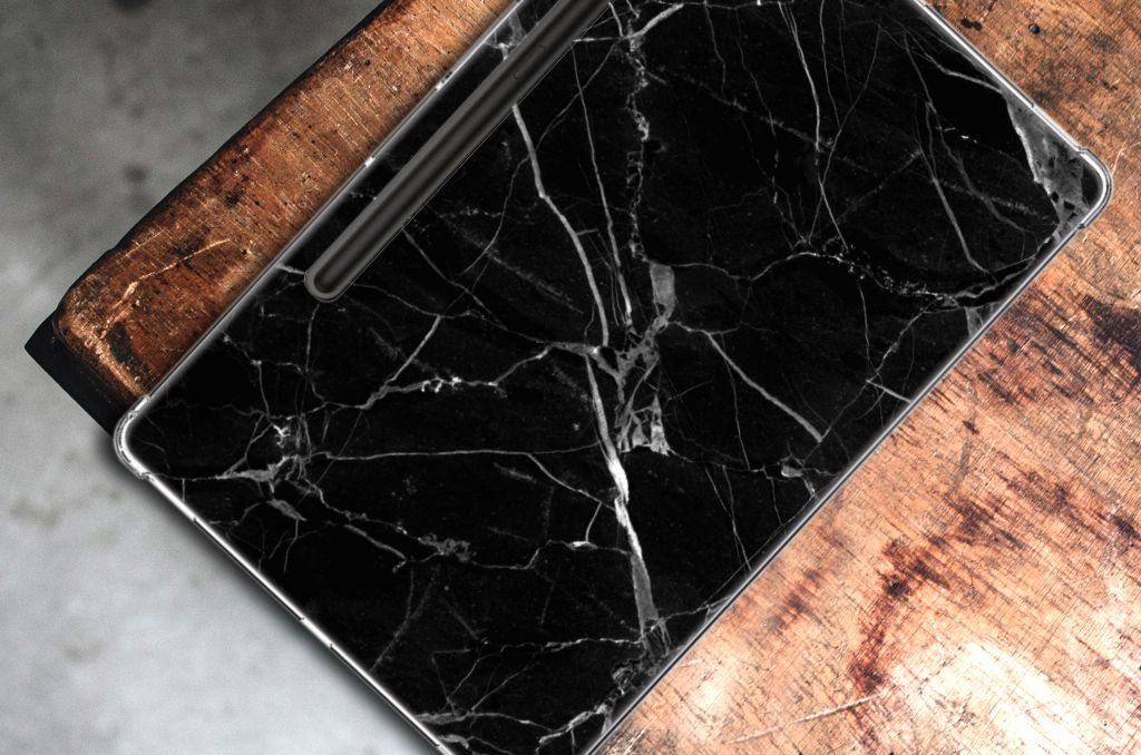 Samsung Galaxy Tab S9 Plus Tablet Back Cover Marmer Zwart - Origineel Cadeau Vader