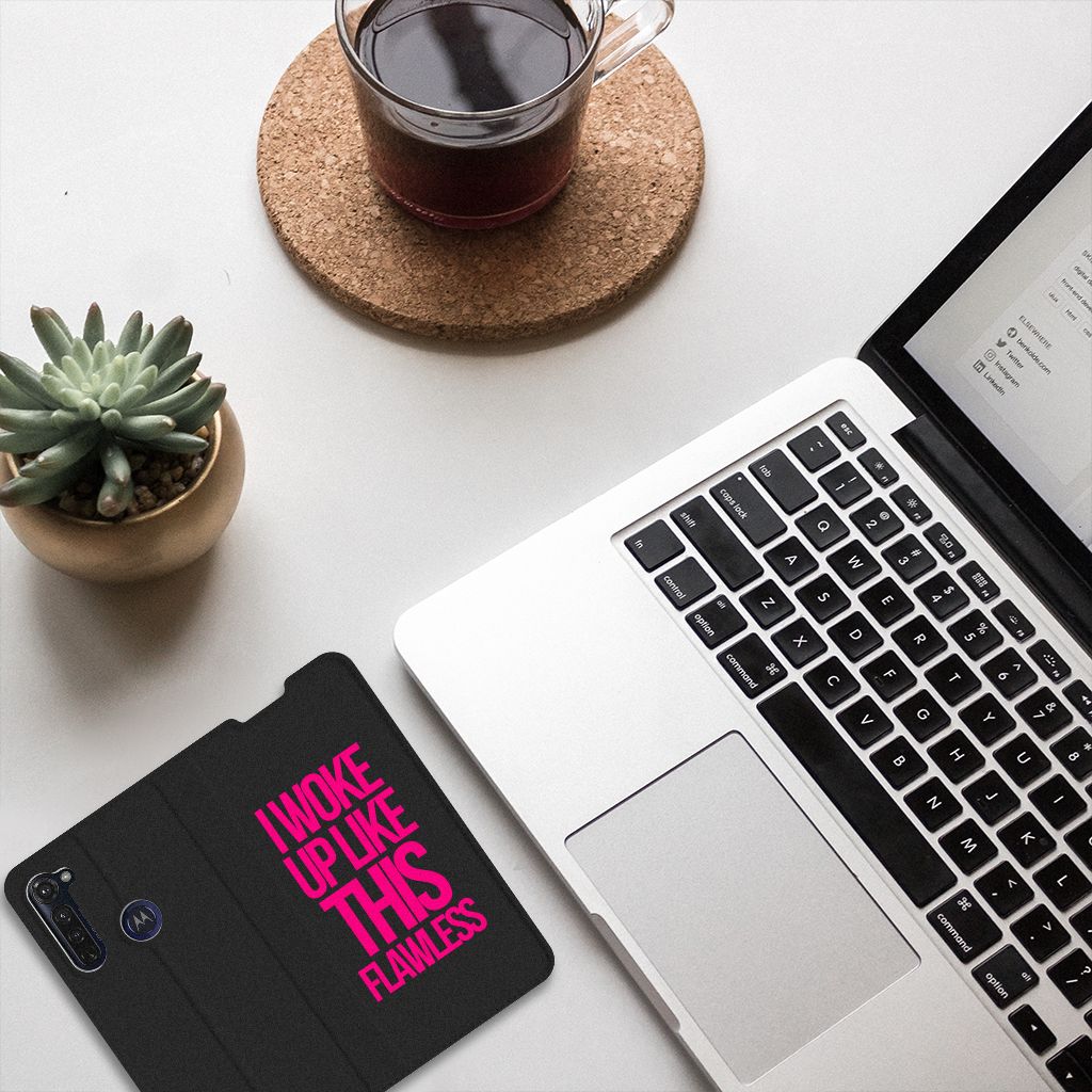 Motorola G8 Power Lite Hoesje met naam Woke Up - Origineel Cadeau Zelf Maken