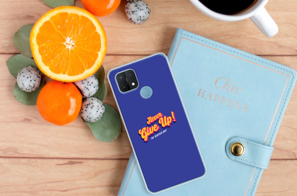 OPPO A15 Siliconen hoesje met naam Never Give Up