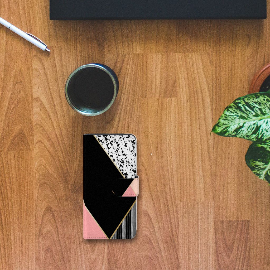 Alcatel 1B (2020) Bookcase met ruimte voor 3 pasjes Zwart Roze Vormen