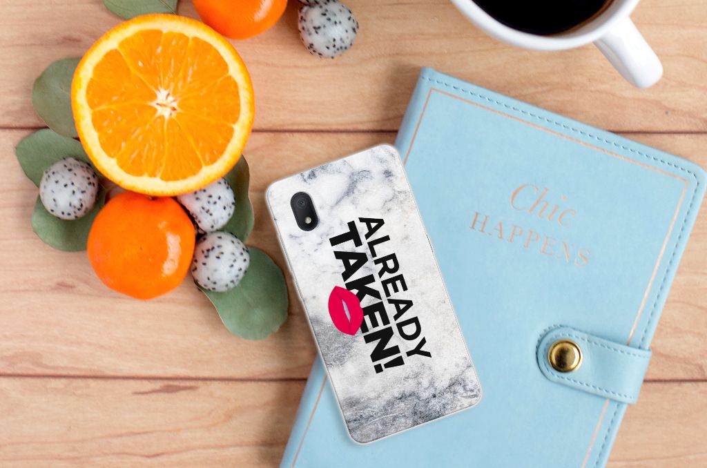 Stel dat je opdringende vrouwen of mannen van je af wil schudden op het moment dat je aan het feesten bent, omdat je al een partner hebt. Dan kun je dat met dit hoesje uitstekend duidelijk maken. Je Alcatel 1B (2020) neem je waarschijnlijk vaak ter hand, dus dan zal de boodschap als je over dit hoesje beschikt zeker weten overkomen. Ook in het openbaar vervoer zal dit hoesje ervoor zorgen dat je minder snel versierd wordt door het andere geslacht. Als je vrijgezel bent en op zoek naar gezelschap, dan kun je beter kiezen voor een ander hoesje uit ons ruime en gevarieerde assortiment. Het design Already Taken White staat op een Siliconen hoesje met naam. Dit hoesje wordt alleen aan de bovenkant bedrukt en is zeer flexibel. De randen van het hoesje blijven transparant.