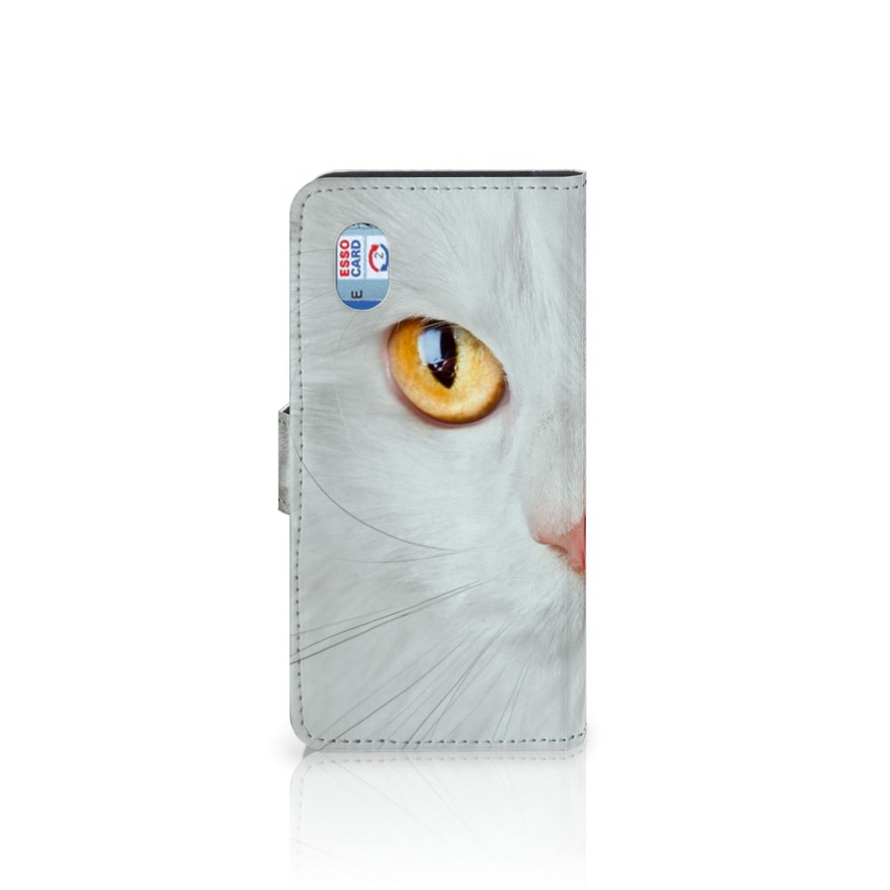 Alcatel 1B (2020) Telefoonhoesje met magnetisch lipje als sluiting Witte Kat