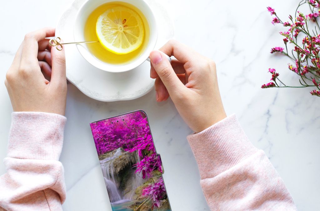 Op deze Alcatel 1S 2020 Flip Cover zie je een kalme waterval en de achtergrond is gevuld met paarse bomen. Samen creëert dit een prachtig en kleurrijk spektakel, iets wat je graag op je Alcatel 1S 2020 hoesje ziet. Wanneer je hiernaar kijkt, word je direct kalm. Als jij je even boos of verdrietig voelt, hoef je alleen maar naar jouw boekhoesje te kijken om weer blij te worden. Ook jouw telefoon zal blij zijn met deze Flip Cover aangezien deze goede bescherming biedt. Als jij je telefoon per ongeluk laat vallen, is er niets aan de hand. Het hoesje zorgt ervoor dat de telefoon intact blijft. Zelfs als hij op het beeldscherm zou vallen, is er dankzij de magnetische sluiting, niets aan de hand.