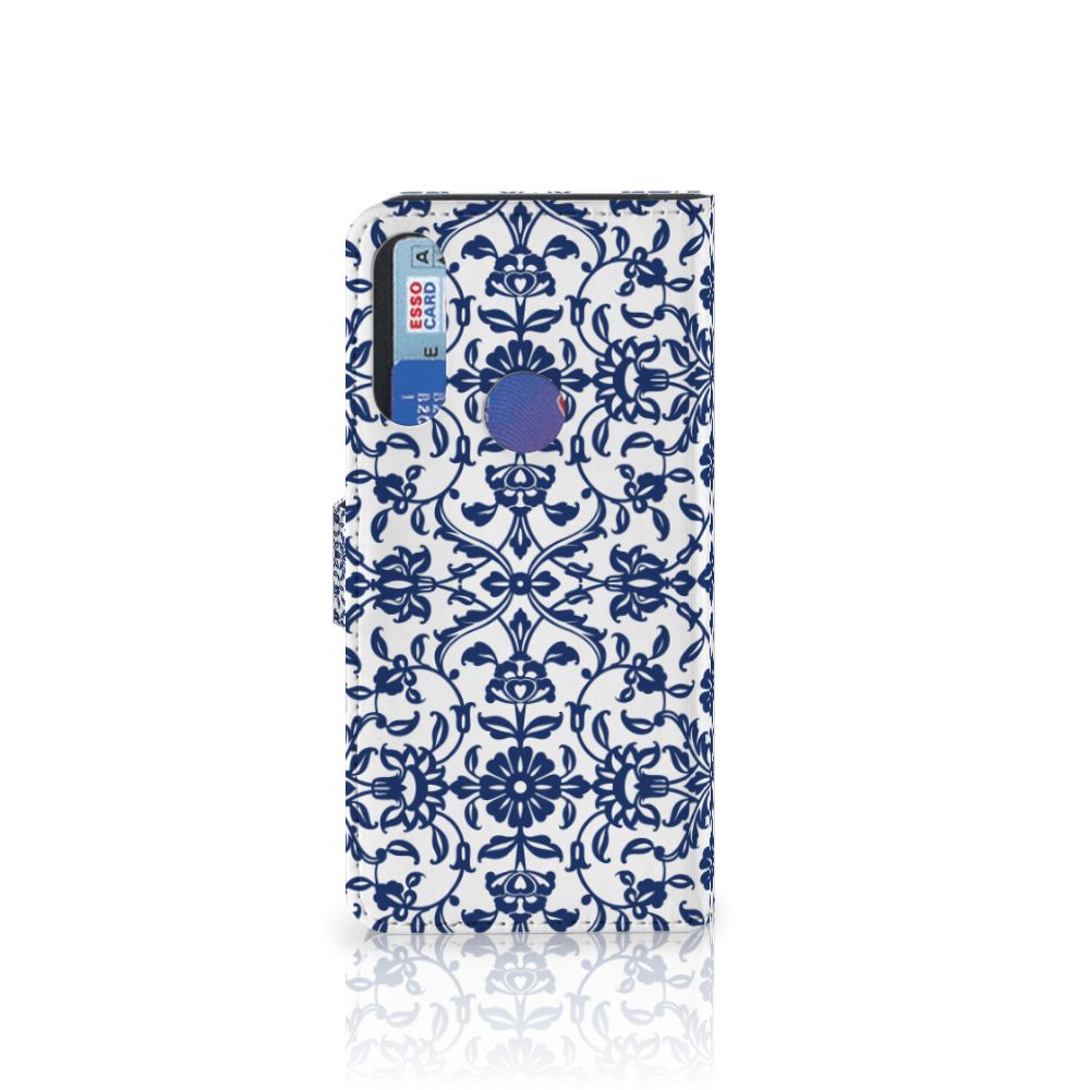 Alcatel 1S 2020 Hoesje met ruimte voor drie pasjes Flower Blue