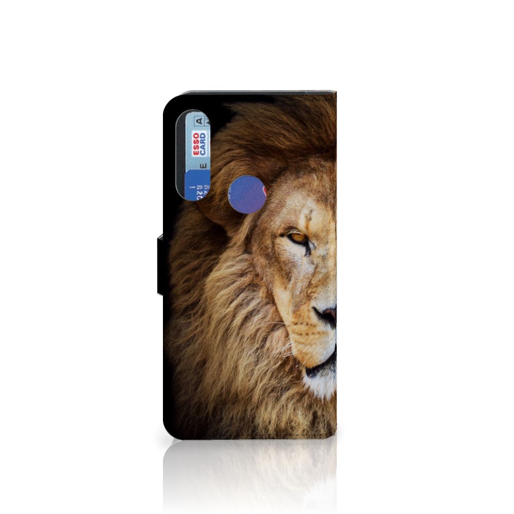 Alcatel 1S 2020 Telefoonhoesje met Pasjes en met magnetische sluitclip Leeuw