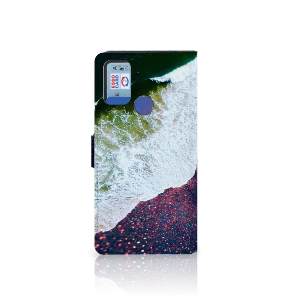 Alcatel 1S (2021) Book Case gemaakt van TPU-siliconen en kunstleer Sea in Space