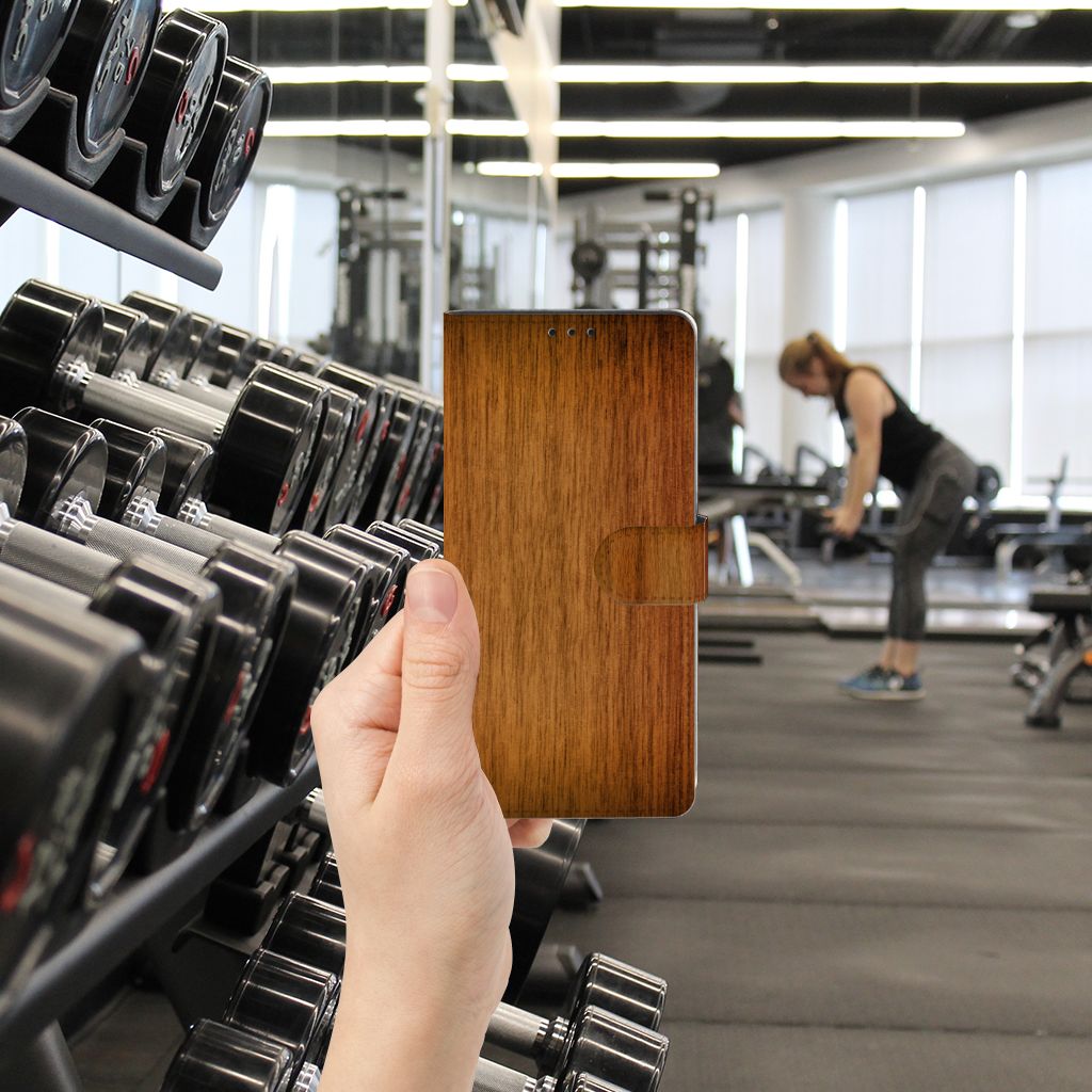 Alcatel 1S (2021) Book Style Case met pasjeshouder Donker Hout