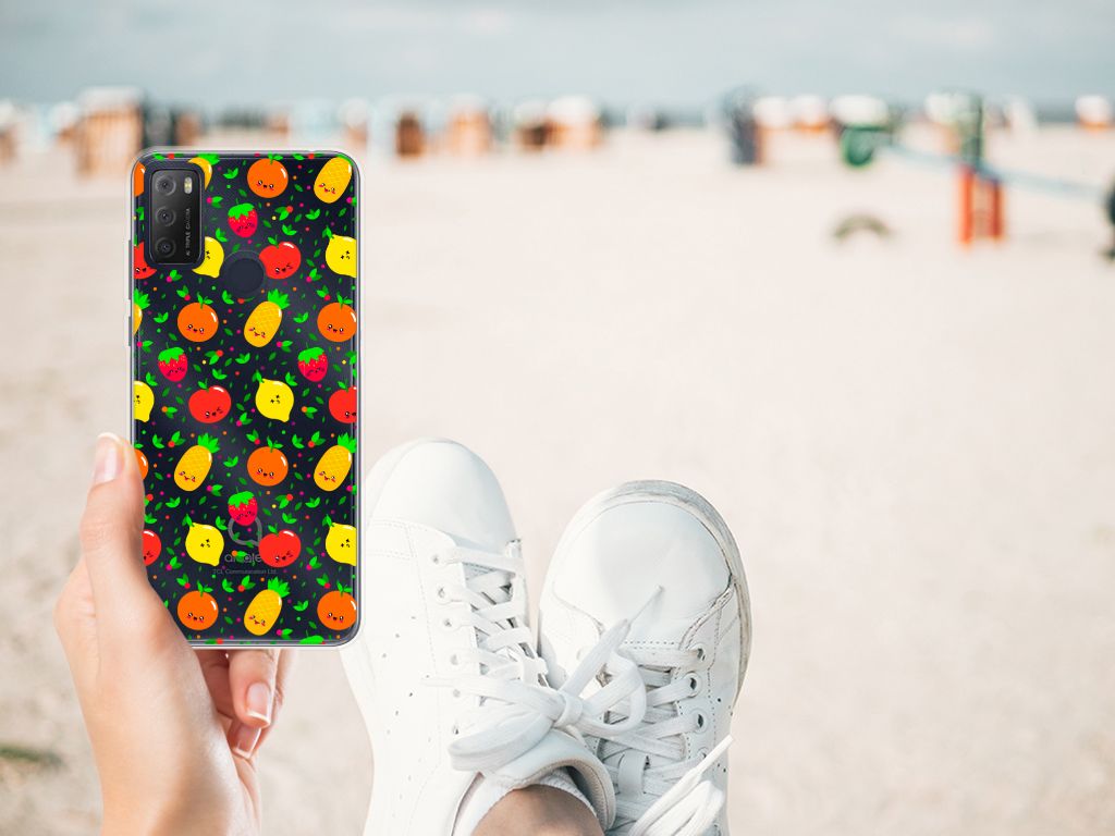 Een fris, fruitig en vrolijk hoesje, deze case met afbeeldingen van aardbeien, ananassen, appels, sinaasappels en citroenen. Minstens twee stuks fruit per dag wordt aanbevolen als dagelijkse hoeveelheid voor de mens. Dit verkleint de kans op allerlei ziekten. Dus met het aantal stukken fruit op de Alcatel 1S (2021) Siliconen Case zou je wel een maandje zoet moeten zijn. Met het hoesje zelf kun je je hele leven doen, dit is namelijk niet stuk te krijgen. Dit komt door het sterke en flexibele materiaal waarvan het gemaakt is. De vrolijk stemmende case het desing Fruits maakt jouw telefoon dus zeer duurzaam. Zorg ervoor dat jouw smartphone gezond blijft en kies voor dit hoesje met frivool fruit. Een tpu case met fruit wordt alleen aan de bovenkant bedrukt en is zeer flexibel. De randen van het hoesje blijven transparant en worden niet bedrukt met het fruit.