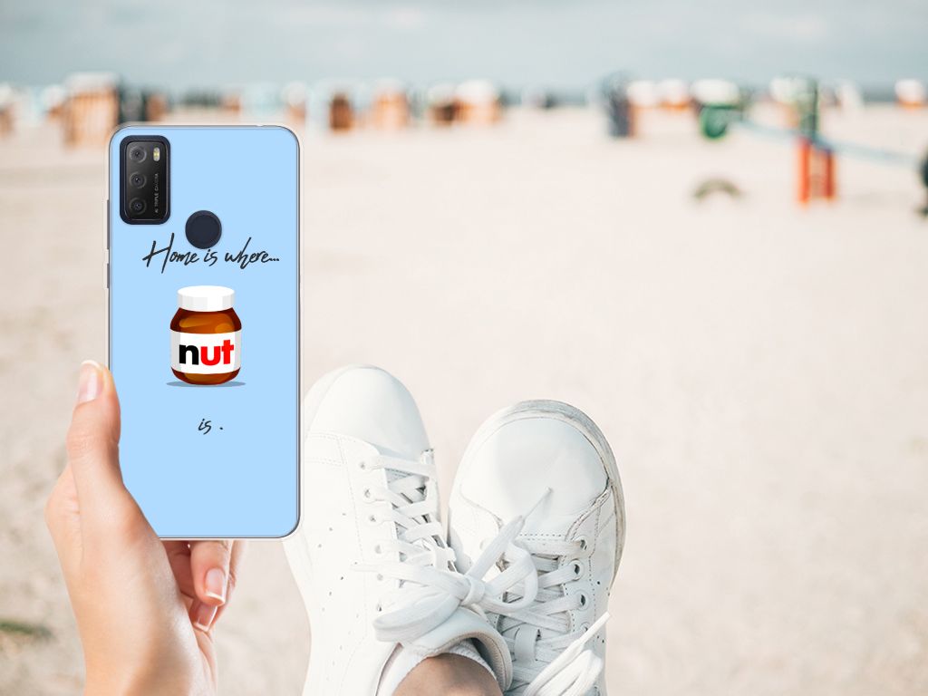 Ben je liefhebber van chocoladepasta, dan is dit het perfecte Alcatel 1S (2021) Siliconen Case voor jou. De chocoladepasta is enorm populair, dus is het niet zo heel gek dat je een ‘Nut Home’ tpu case in een blauwe kleur aantreft in ons assortiment design hoesjes met illustraties. Dit tpu hoesje is zeer flexibel en past altijd in je broekzak. Alleen de bovenkant van dit hoesje wordt door ons bedrukt in blauwe kleur met de pasta, op zeer duurzame manier. Mensen die houden van de bekendste pasta van het moment, kiezen voor deze blauwe tpu case. Er staan geen illustraties op de zijkanten van een tpu case. Je kunt ook een eigen tekst toevoegen aan het opvallende design.