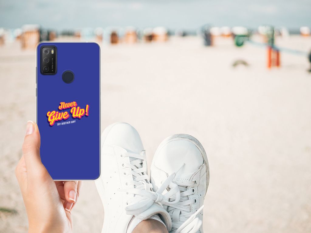 Ben je op zoek naar een uniek telefoonhoesje voor je Alcatel 1S (2021)? Dan ben je bij B2C Telecom aan het juiste adres! Speciaal voor jou hebben we dit prachtige Never Give Up design in onze collectie hoesjes opgenomen. Het design wordt bedrukt op een Siliconen hoesje met naam en is gemaakt van flexibel rubber. Het design wordt alleen aan de bovenkant van het hoesje bedrukt en de randen blijven transparant. Aan de zijkanten zijn uitsparingen gemaakt waardoor je met gemak alle knoppen en poorten kunt bedienen. Wij adviseren om dit hoesje in combinatie met een screenprotector te gebruiken voor een langere levensduur van je telefoon. Wil je dit design hoesje nog iets extra's geven? Voeg dan gratis je naam of een quote toe! Is dit design hoesje toch niet helemaal wat je zocht? Ontwerp dan zelf een hoesje in ons ontwerpprogramma.