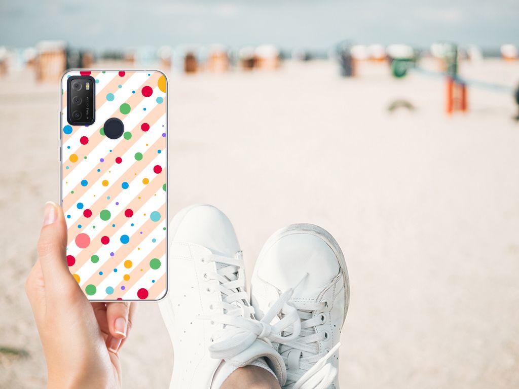 Een Alcatel 1S (2021) TPU bumper met verschillende kleuren stippen is een schitterende bescherming van jouw smartphone. De tpu case met het design Dots in alle kleuren van de regenboog komt voor jou als geroepen. Maak je geen gebruik van dit zeer mooie hoesje, dan kan het met jouw smartphone een beetje beroerd aflopen. Deze mooie tpu case met verschillende soorten klompen in verschillende kleuren is zo’n beetje de meest flexibele case die er bestaat. Het hoesje met stippen zorgt voor een goede bescherming van je smartphone, vooral aan de achterzijde en zijkanten. Met een tpu hoesje met stippen in verschillende kleuren blijft jouw gsm volledig in tact. Heb je liever een tpu case met stippen in andere opvallende kleuren? Ontwerp dan zelf een tpu case met je eigen foto’s en teksten! De case wordt aan de achterzijde bedrukt met klompen, de zijkanten blijven doorzichtig.